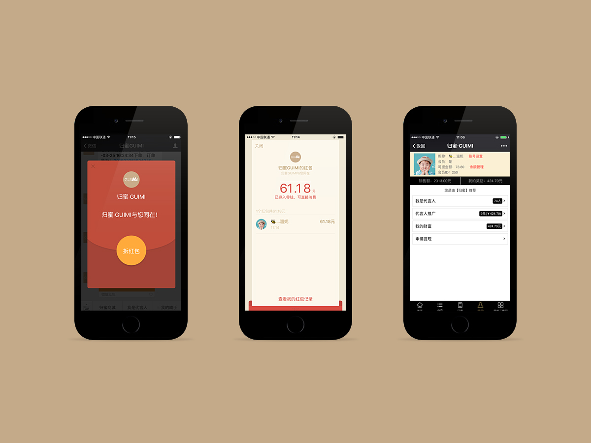 歸蜜微信三級分銷系統(tǒng),是由聆科網(wǎng)絡研發(fā),一個買了還能賺錢的女性創(chuàng)業(yè)平臺。通過全新的“移動互聯(lián)網(wǎng)+包包”的商業(yè)模式,傳播歸蜜包包“優(yōu)雅、神秘、堅毅、力量、獨立”的品牌精神!微信公眾號:guimishopwx
