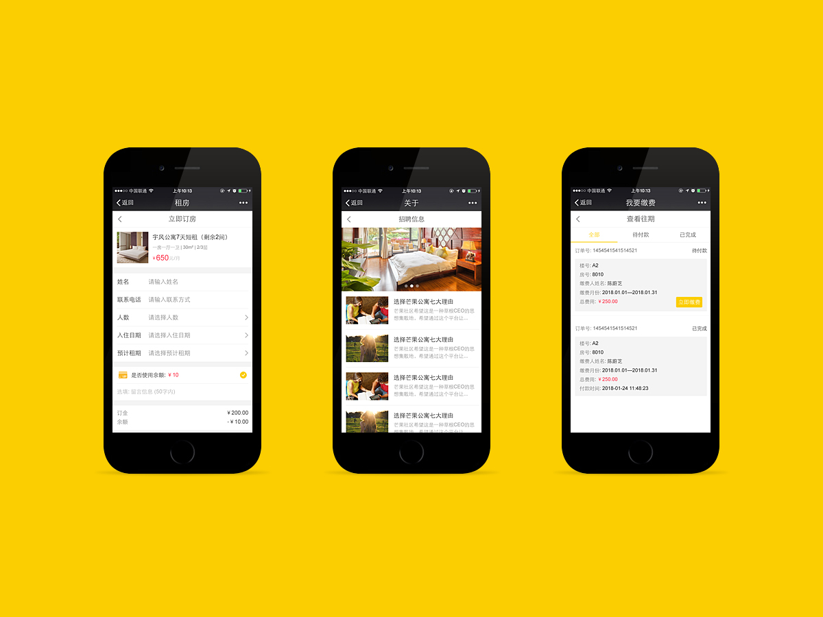公寓系統(tǒng)訂房+租房+繳費(fèi)+報修+合同