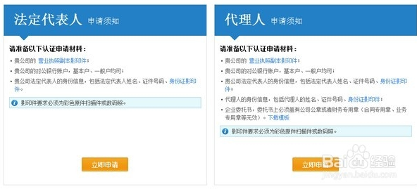 步聚八:在法定代表人這一列,選擇【立即申請】;