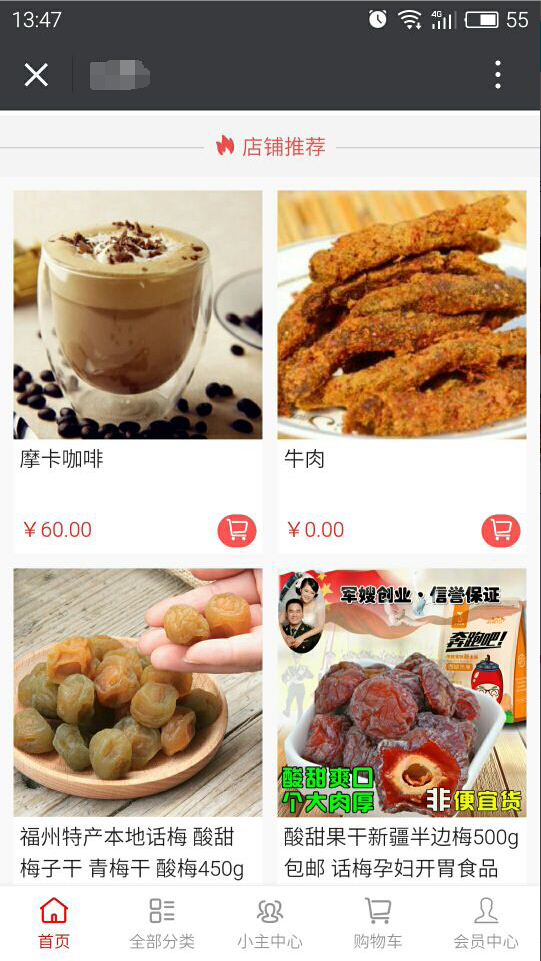 商品添加保存后,已上架且有庫(kù)存的情況下,在列示,且在前臺(tái)“店鋪推薦”中瀏覽購(gòu)買,參見(jiàn)下圖: