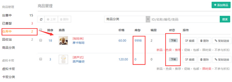 “下架”的商品無(wú)論是否有倉(cāng)庫(kù),都在列示,參見(jiàn)下圖: