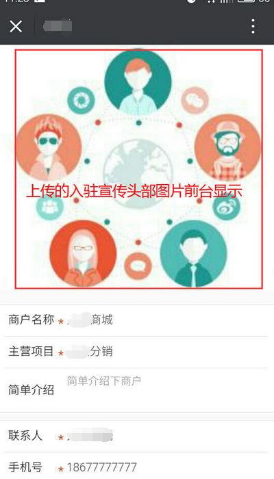 上傳的入駐宣傳頭部圖片會在手機端會員申請時顯示,參見下圖: