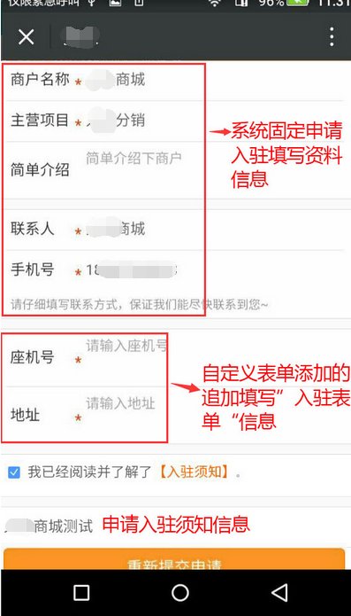 申請入駐時填寫的資料是系統(tǒng)固定的不定自定義,可在【自定義表單】添加追加”入駐表單“填寫的資料信息,在”入駐表單“選擇追加選擇添加需填寫的自定義資料,參見下圖: