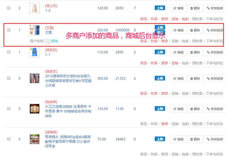 1、多商戶添加的商品顯示在商城首頁