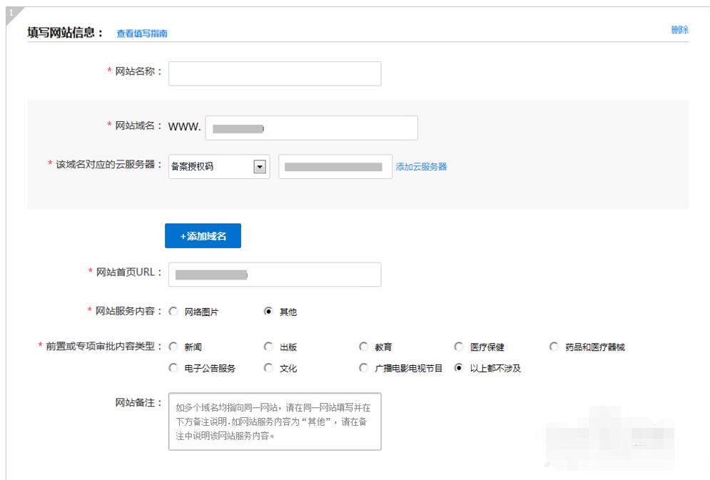 填寫你要備案的域名,如果你要備案多個(gè)域名的話,這里可以先寫一個(gè),后面有更詳細(xì)的寫域名和網(wǎng)站信息的步驟。