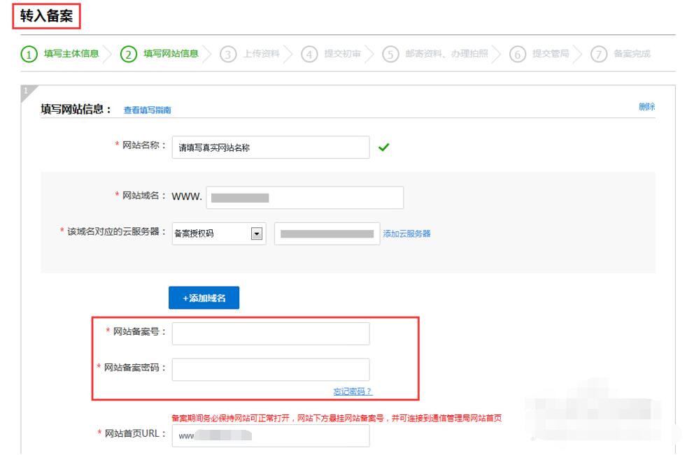 ps:有備案號的域名,系統(tǒng)會系統(tǒng)判斷,需要填寫備案密碼,如下圖: