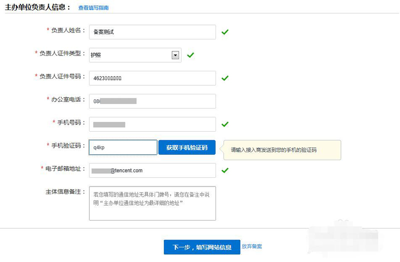 填寫備案的主體信息,也就是說誰辦的這個(gè)網(wǎng)站,個(gè)人備案的話就是您本人,企業(yè)備案的話就是要填寫企業(yè)的信息。
